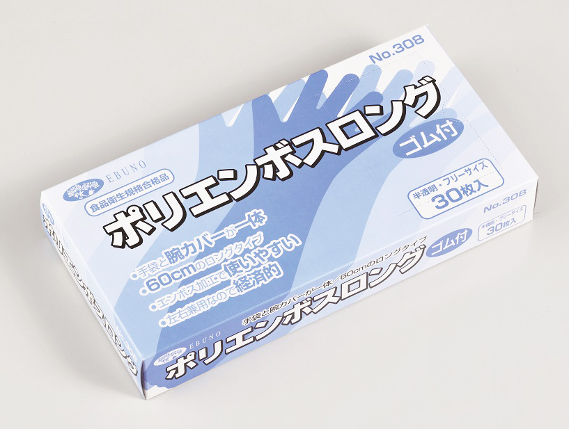 - ほぼ腕全体を覆うロングタイプのCPE手袋です。