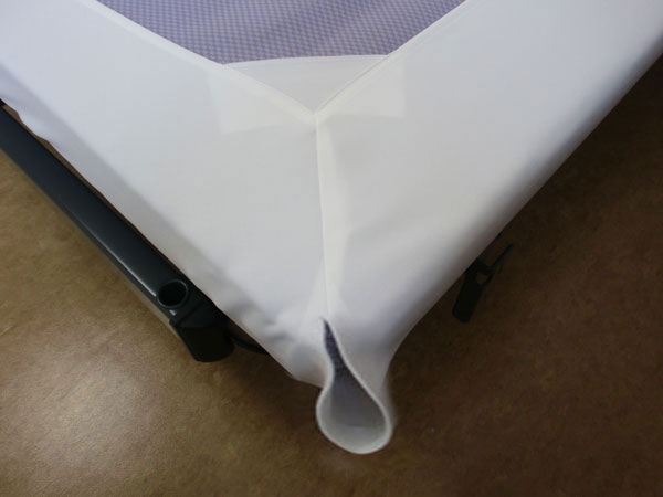 - 巻き込み不要で四隅を引っ掛けるだけの簡単脱着